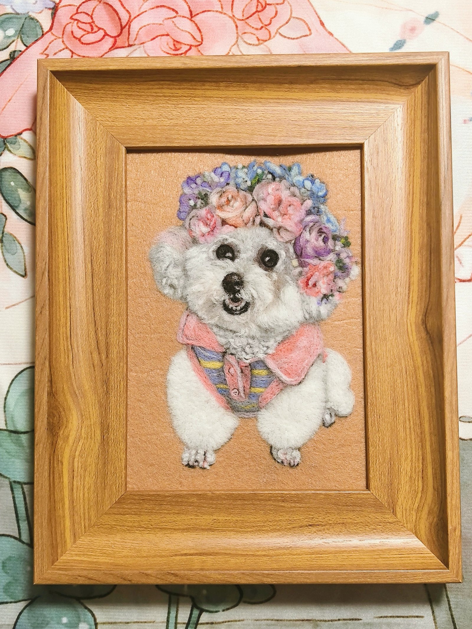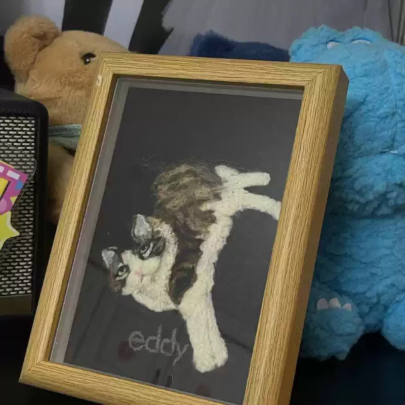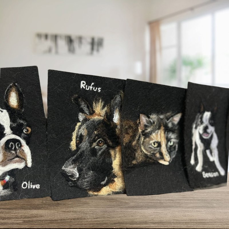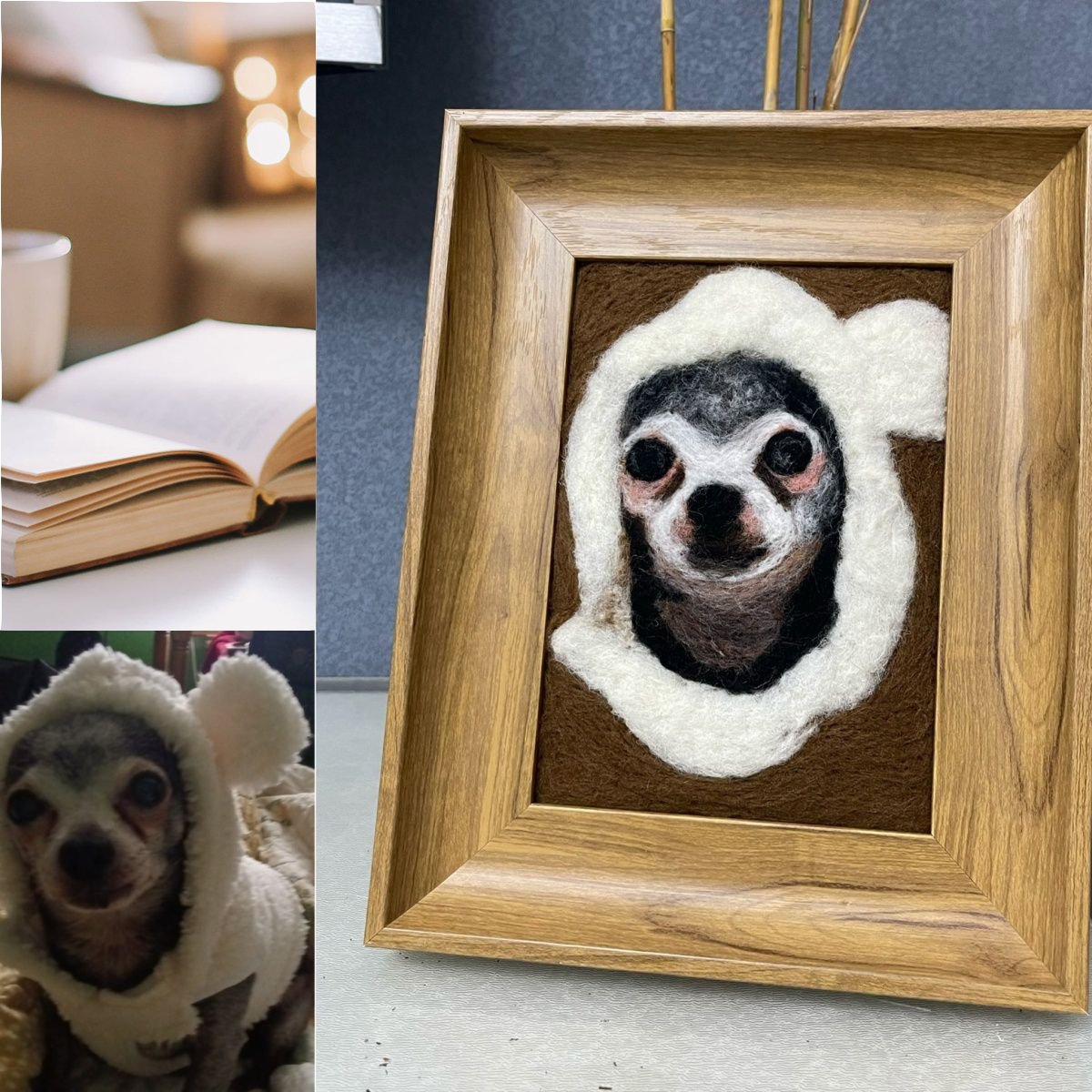 - Each portrait begins with soft strands of Premium Wool, carefully shaped through needle felting to bring your beloved pet to life in wool.